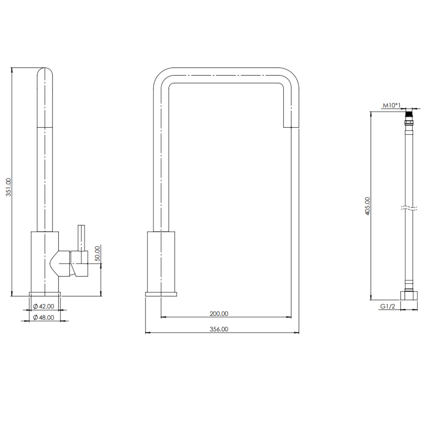 - Dimensions: H357 x W42 x D206 mm