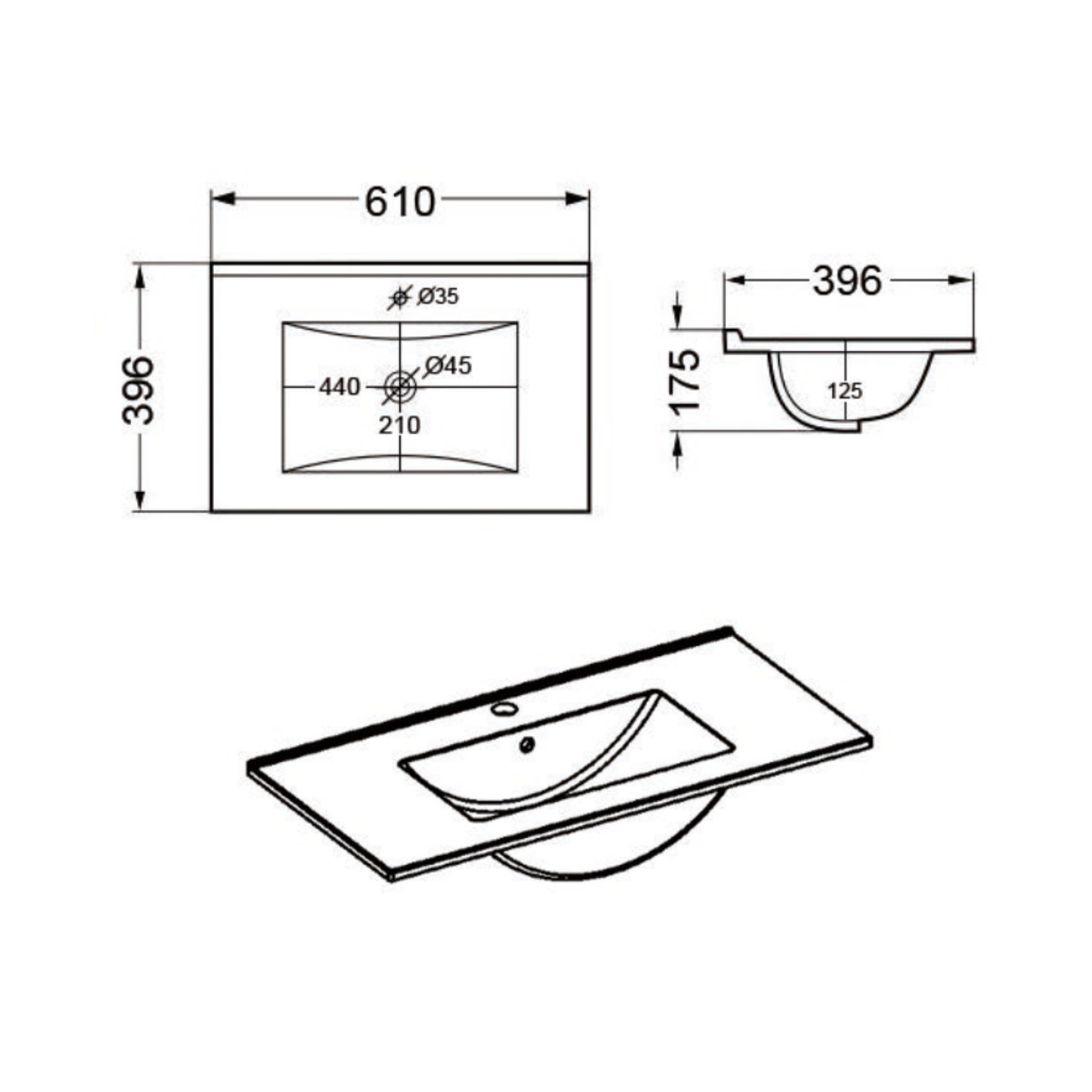 - Overall Toilet & Sink Unit Dimensions: H882mm x W1100mm x D396mm (Please note the main footprint of the unit is W1090mm x D385mm but the basin provides an overhang which slightly increases the measurements)