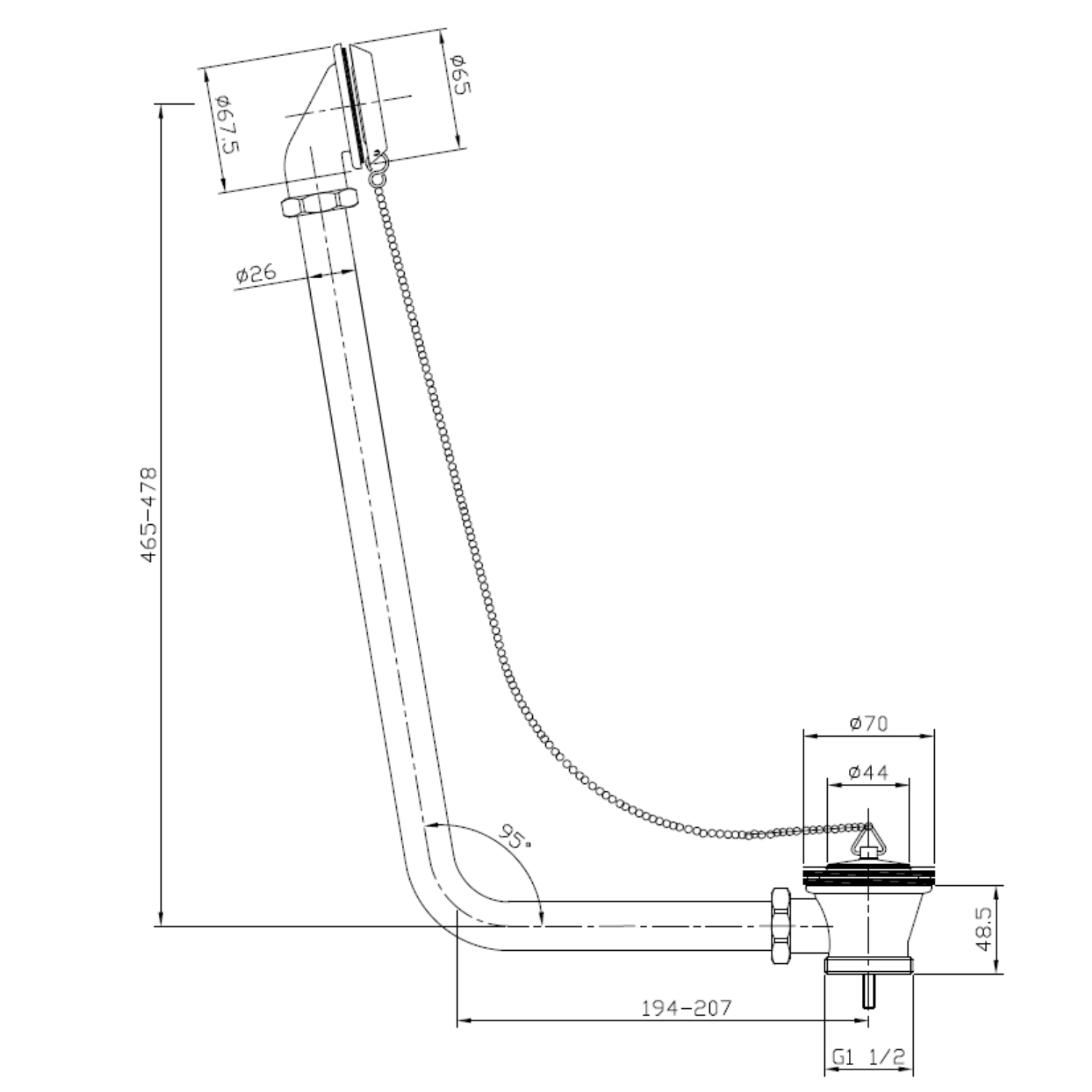 The traditional chrome-finished exposed bath waste is the perfect complement to roll-top freestanding baths such as Park Royal, and Baxenden. Crafted from high-quality brass with a zinc alloy plug and chain, it offers both durability and timeless elegance. The exposed bath trap and pipe complete the classic look beneath your freestanding bath, enhancing its period-style charm. Finished in polished chrome, it seamlessly blends with traditional bathroom decor while adding a touch of sophistication.