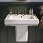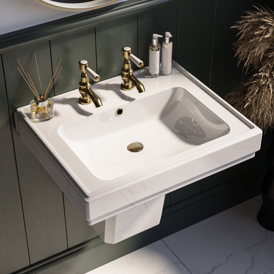 This Park Royal semi-pedestal traditional basin oozes period charm with its vintage aesthetics, helping you achieve that elegant British bathroom look from eras of great design. It has 2 pre-drilled tap holes; and taps aren't included, so you're free to choose the taps of your choice.