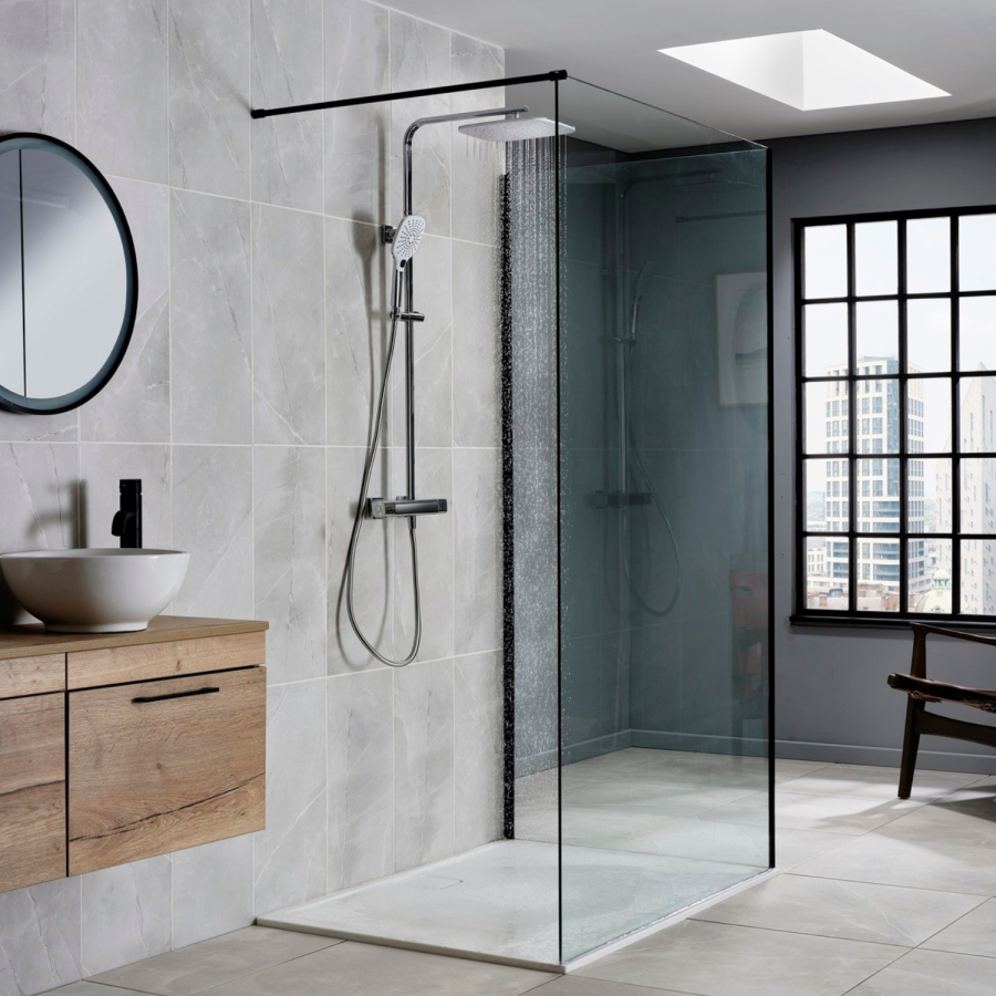 The Velino bar diverter mixer shower alternates the flow of water between a rainfall effect fixed shower head and a 3 spray pattern, handheld shower head for added luxury.