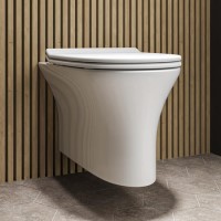 This wall-hung toilet with a round pan design has been manufactured from high-quality ceramic and makes a perfect addition to any bathroom. It's much more hygienic too thanks to the rimless design, meaning when you flush, water is propelled around the bowl, giving it a more thorough clean. Also, it's easier to clean as it's off the floor, giving the effect of a floating toilet.