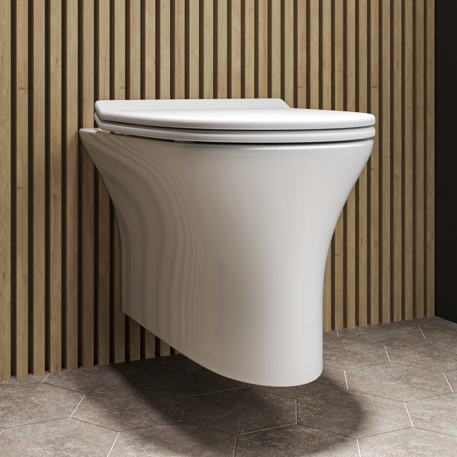 - Wall-hung toilet ensures all unsightly pipework is hidden