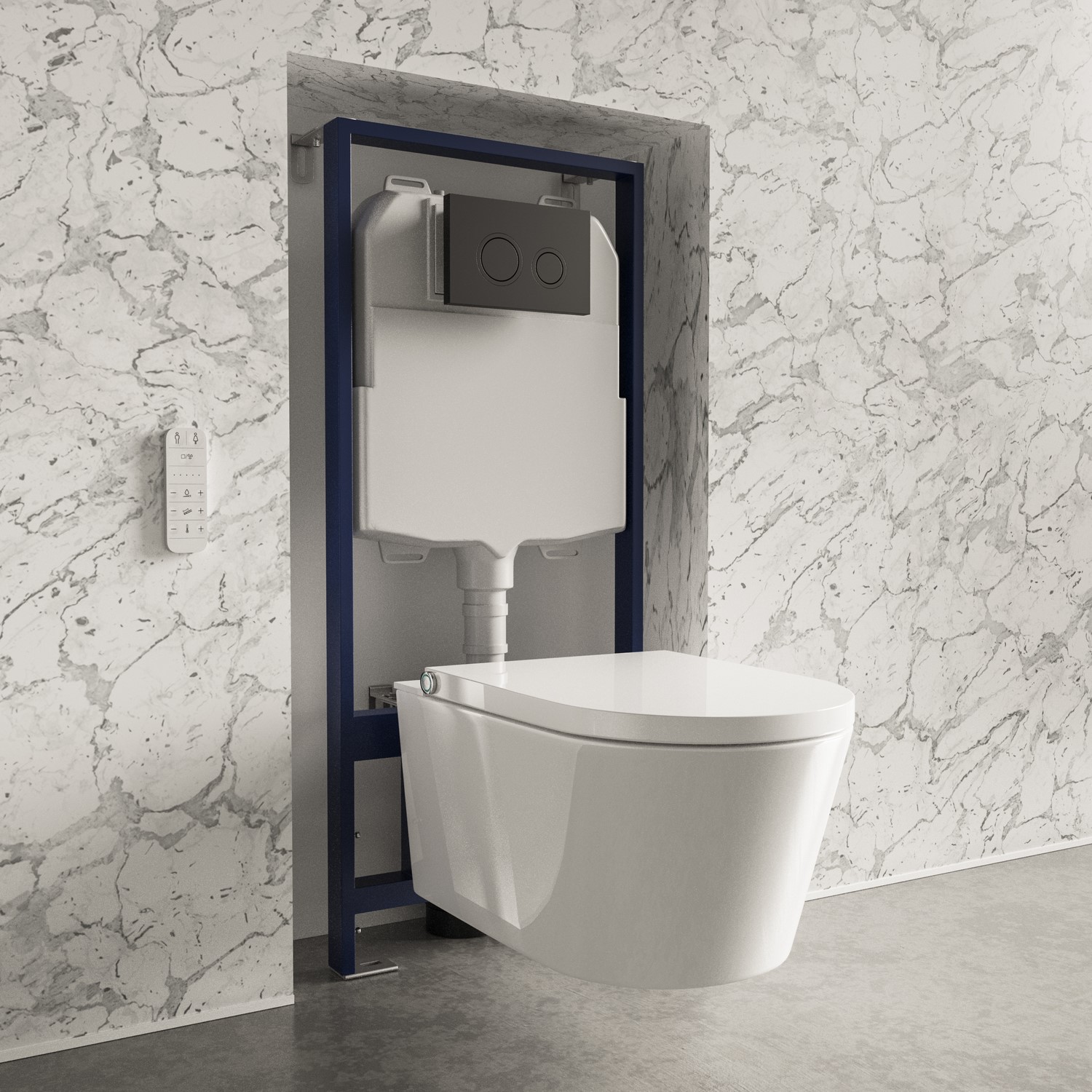 Control your smart toilet using the remote that attaches to a wall or via the on-seat control.