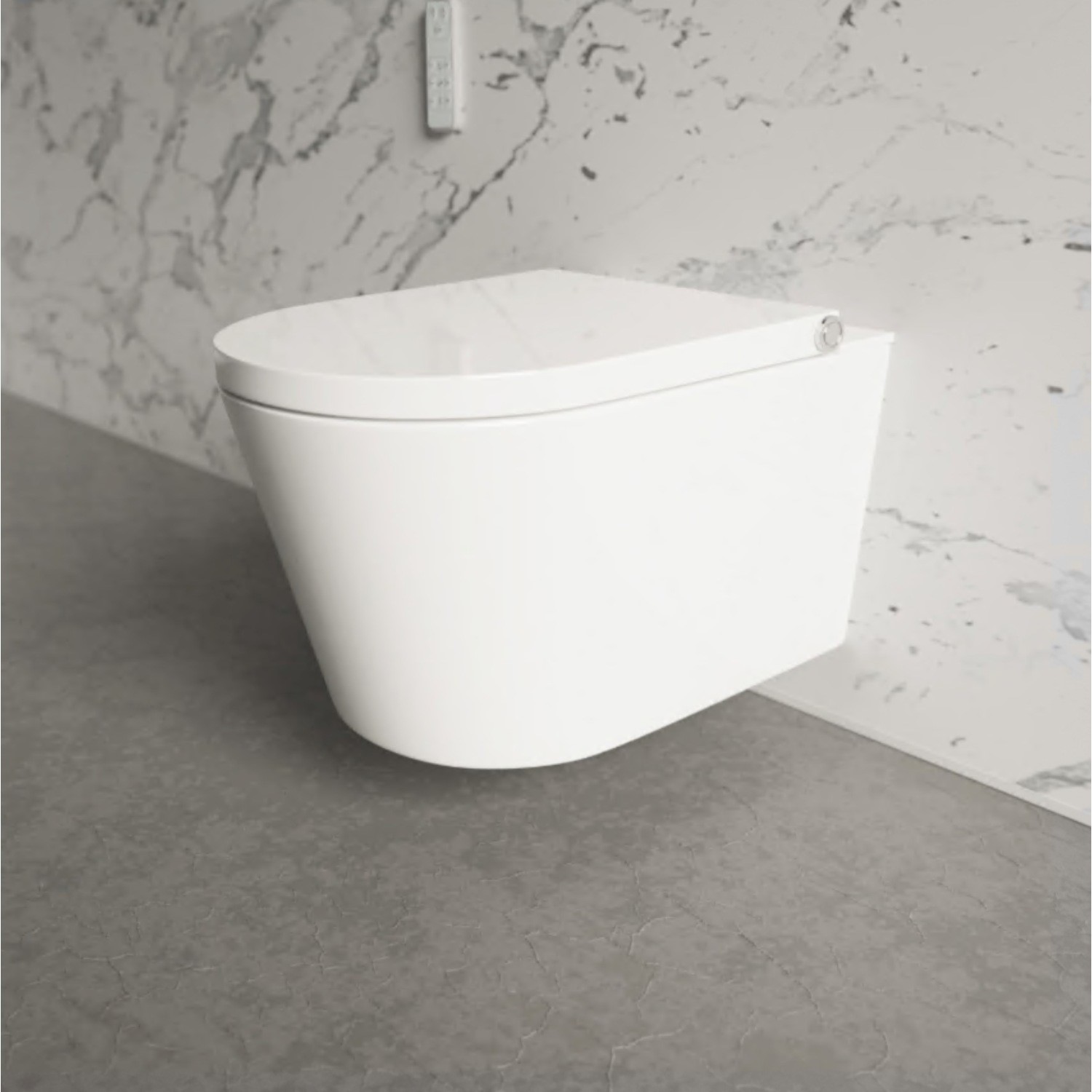Control your smart toilet using the remote that attaches to a wall or via the on-seat control.