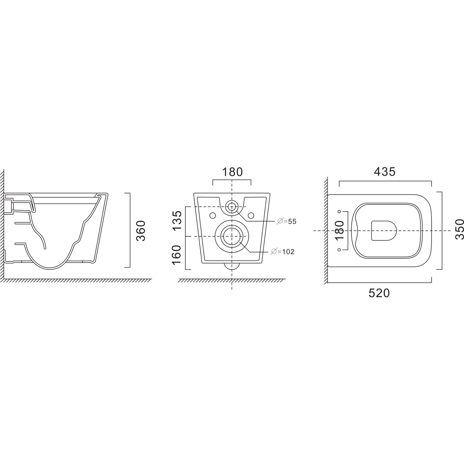 Contemporary Wall-Hung Design: Sleek square pan and rimless technology for improved hygiene and easy maintenance. Also, it's easier to clean as it's off the floor, giving the effect of a floating toilet.