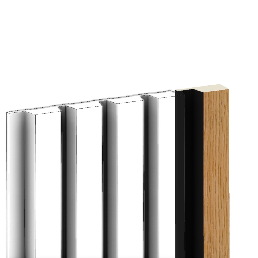 Enhance the aesthetics of dull interior walls with the Abacus slatted wall panels range. Featuring a modular tongue and groove design to achieve an unforgettable, modern looking bathroom that is equally practical. They can be applied horizontally or vertically as required. The Oak and Black panel brings a quirky and stylish twist to your wall, with a distinctive stripe pattern.