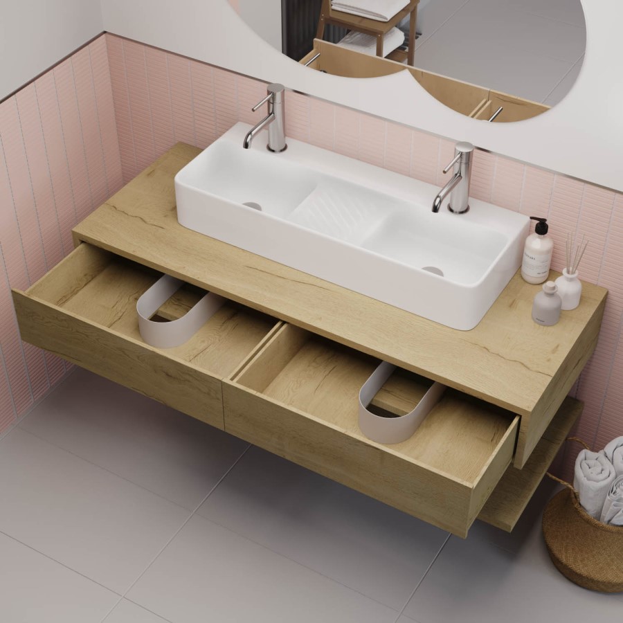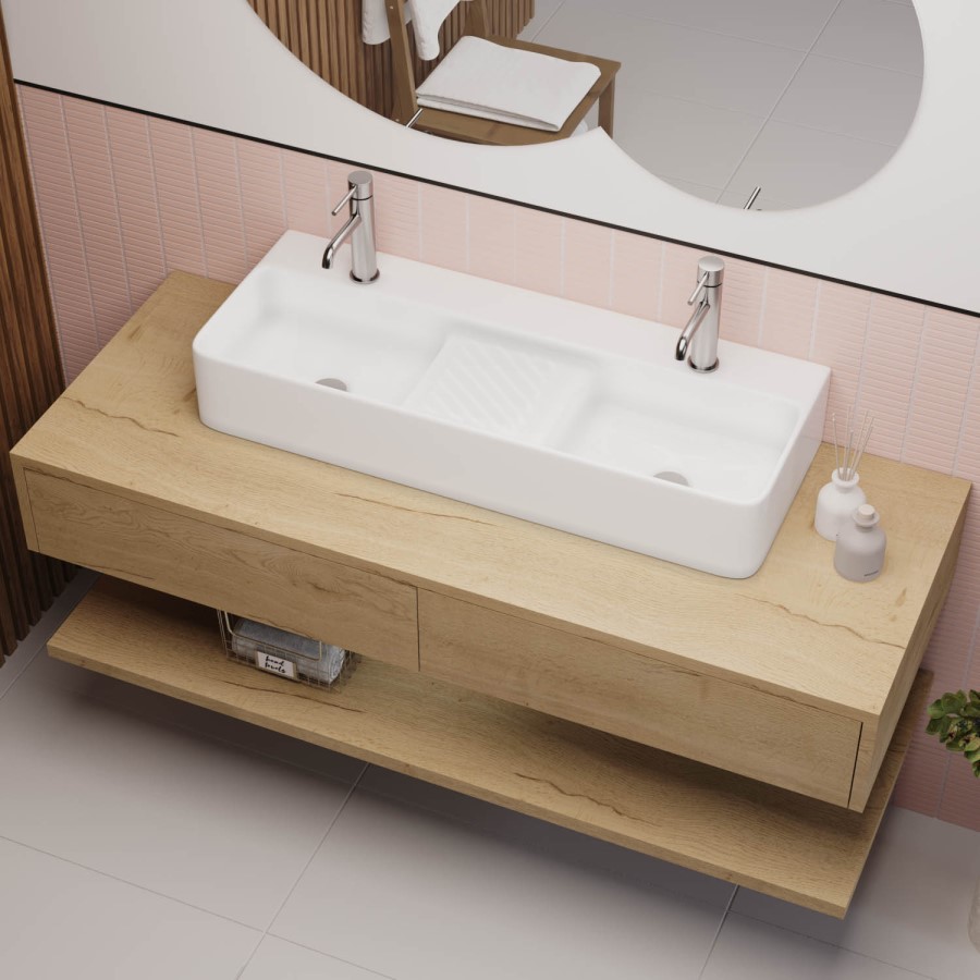 - Square double basin can be fitted as a countertop or wall hung