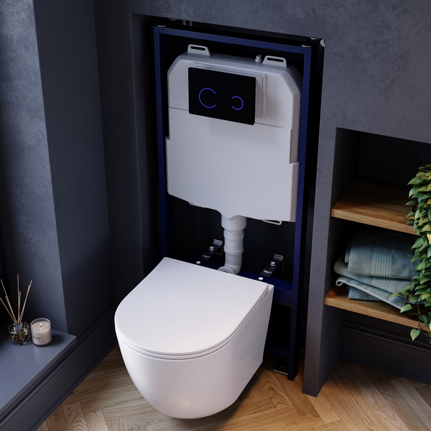 Dual Flush Cistern & Purificare Black Glass Sensor Flush Plate: The dual flush cistern offers 3L/6L flushes for water-saving, and the Purificare Black Glass Sensor Flush Plate offers a modern touch to your bathroom, designed for easy maintenance and a discreet finish.
