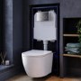 The toilet includes the 1160mm Mechanical WC Fixing Frame and Cistern, providing a strong, reliable mounting system for hassle-free installation. The frame and cistern are designed with adjustable fittings (0-200mm) for a perfect fit, while the flush plate can be easily removed for maintenance access.
